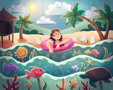 Mock Editorial Illustration for NPR's article, "Ode to the Manta Ray" by Emily Kwong and Rebecca Ramirez describing the enchanting experience of encountering a manta ray.